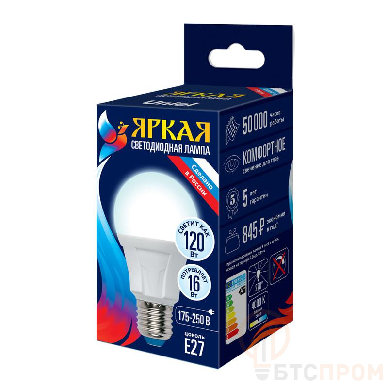 Лампа светодиодная Uniel LED-A60 16W/4000K/E27 /FR PLP01WH Яркая 16Вт – высокомощная лампа с нейтральным светом. Мощность 16 Вт. Нейтральный белый свет (4000K) для освещения больших офисов, торговых залов, производственных помещений. Цоколь E27. Матовая колба (FR). Упаковка - картон. Напряжение 220-240 В. Uniel - производительность и надежность.