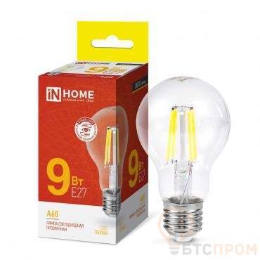 Лампа светодиодная LED-A60-deco 9Вт грушевидная прозрачная 3000К тепл. бел. E27 1040лм 230В IN HOME 4690612008066