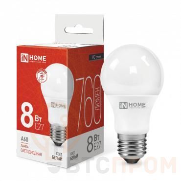 Лампа светодиодная LED-A60-VC 8Вт грушевидная 4000К нейтр. бел. E27 760лм 230В IN HOME 4690612024028