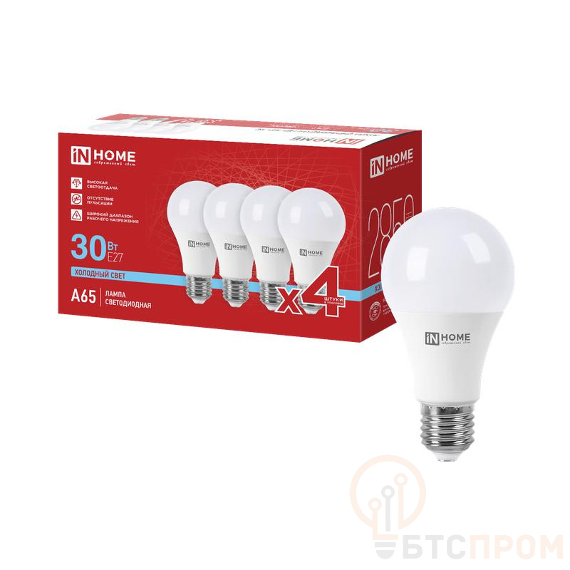 Светодиодная лампа LED-A65-VC от IN HOME — это современное и экономичное решение для основного освещения в любом помещении. Комплект из 4 ламп позволяет сразу оснастить всю комнату или офис.