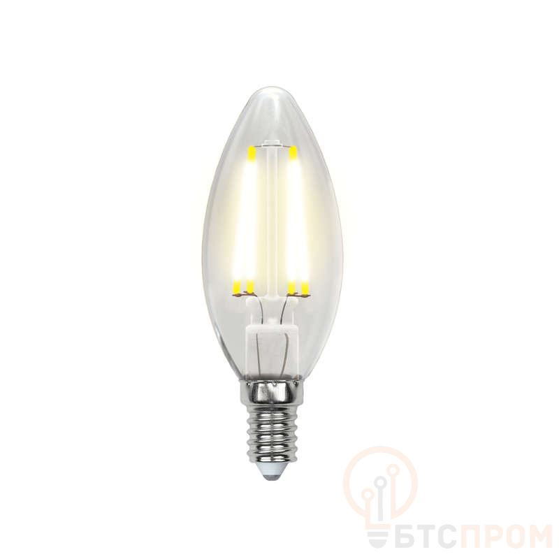 Лампа светодиодная Uniel LED-C35-6Вт/WW/E14/CL GLA01TR прозр. – филаментная лампа-свеча с теплым светом. Мощность 6 Вт. Теплый белый свет (3000K). Прозрачная колба (CL). Форма "свеча". Цоколь E14. Uniel - теплое свечение в прозрачной колбе.