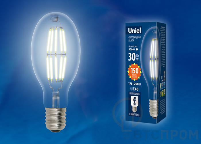 Лампа светодиодная LED-ED90-30W/DW/E40/CL GLP05TR колба прозр. свет дневной бел. 6500К упак. картон Uniel UL-00003761