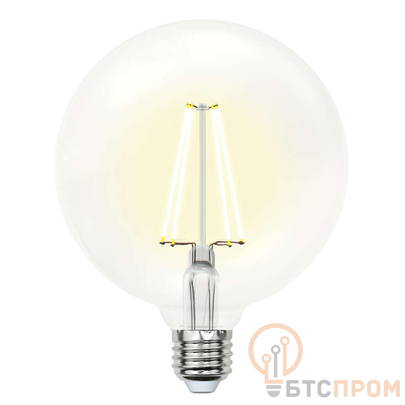 Лампа светодиодная Uniel LED-G125-10Вт/WW/E27/CL – филаментная лампа-шар с теплым светом. Мощность 10 Вт. Теплый белый свет (3000K). Прозрачная колба (CL). Форма "шар". Цоколь E27. Uniel - классический шар с теплым свечением.