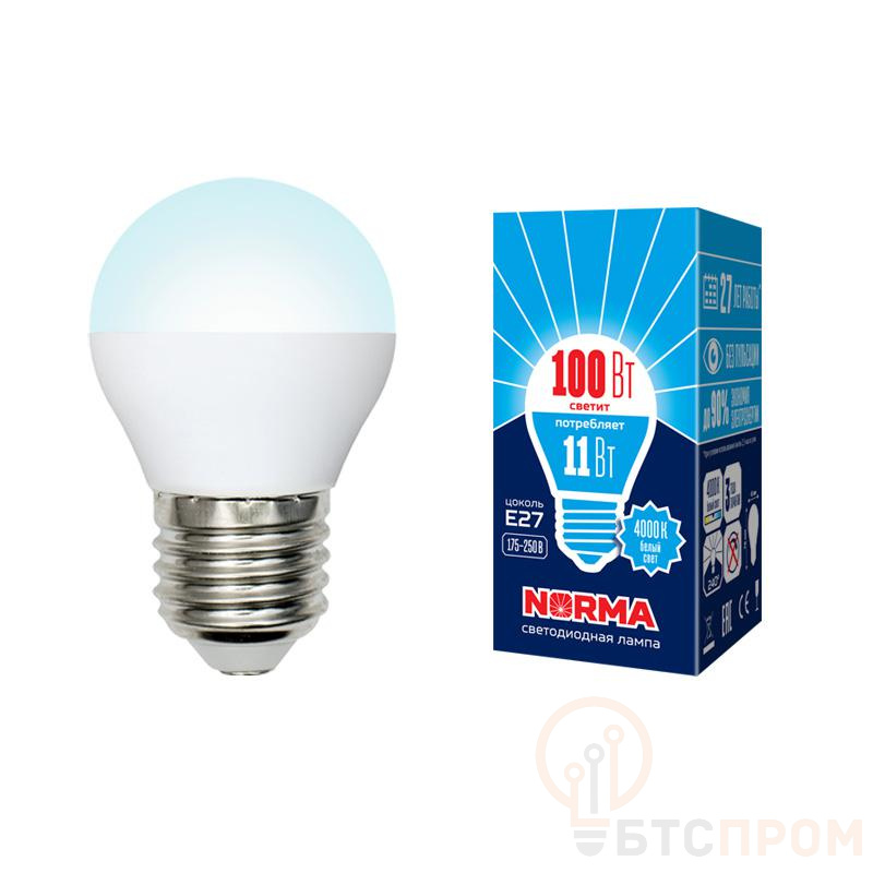–Лампа светодиодная LED-G45-11W/NW/E27/FR/NR Norma 11Вт матовая E27 (упак. картон) Volpe UL-00003834
