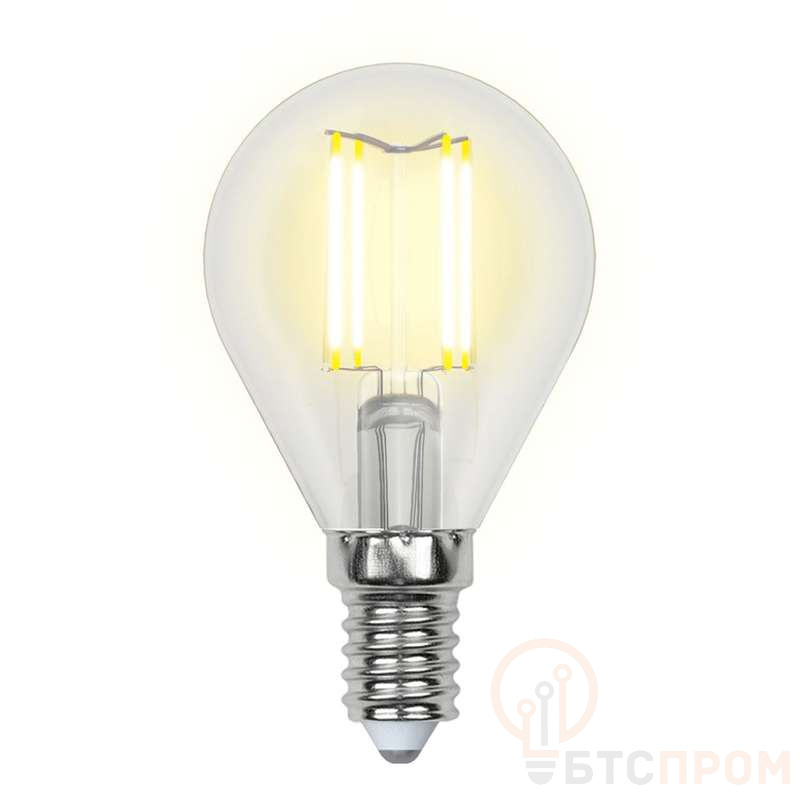 Лампа светодиодная LED-G45-5W/WW/E14/CL/DIM GLA01TR форма "шар" прозр. Air свет теплый бел. 3000К диммир. упак. картон Uniel UL-00002866