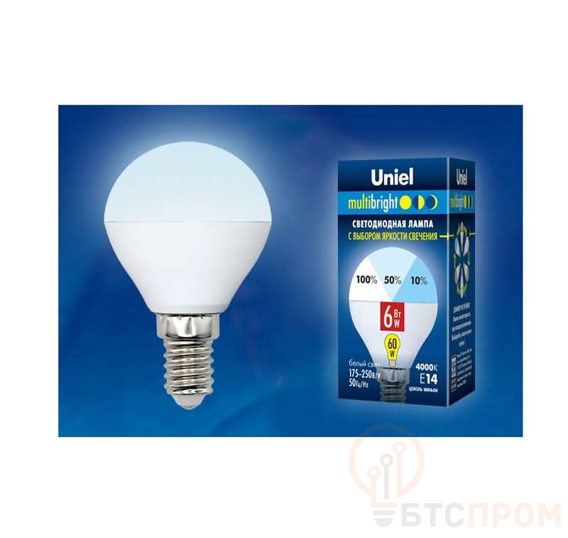 Лампа светодиодная LED-G45-6W/NW/E14 /FR/MB PLM11WH Multibright 6Вт шар матовая 4000К нейтр. бел. E14 100-50-10 (упак. картон) Uniel UL-00002376