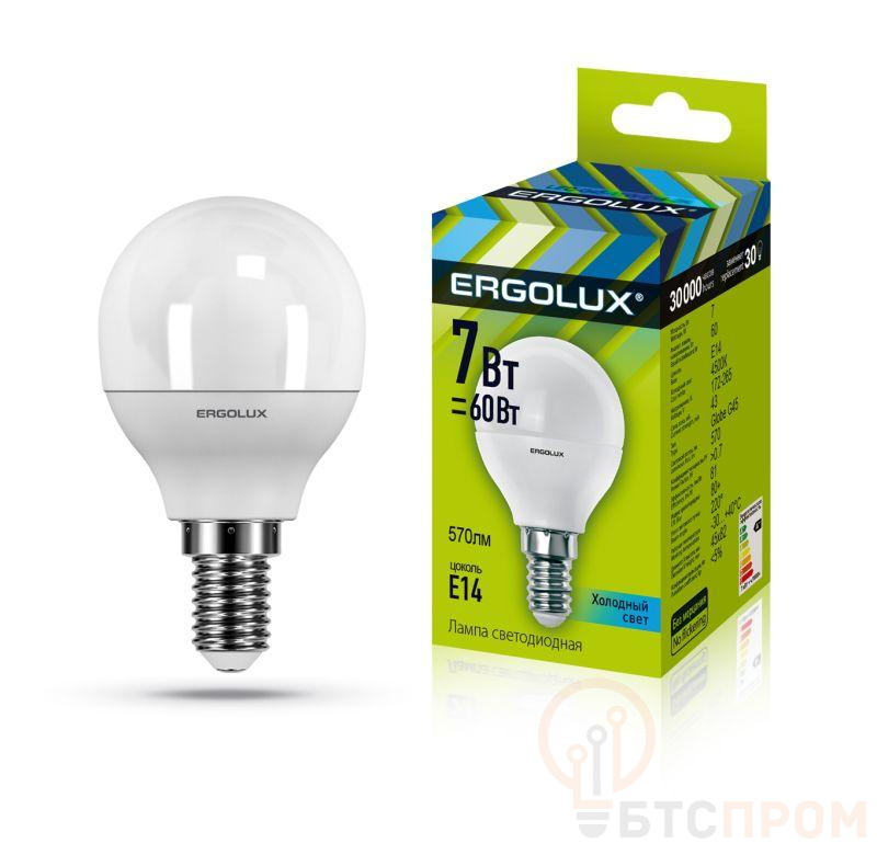 Мощность 7 Вт, Эквивалент лампы накаливания 60 Вт, Цоколь E14, Цветовая температура 4500 К, Световой поток 570 лм, Угол светового пучка 220, Индекс цветопередачи 80+