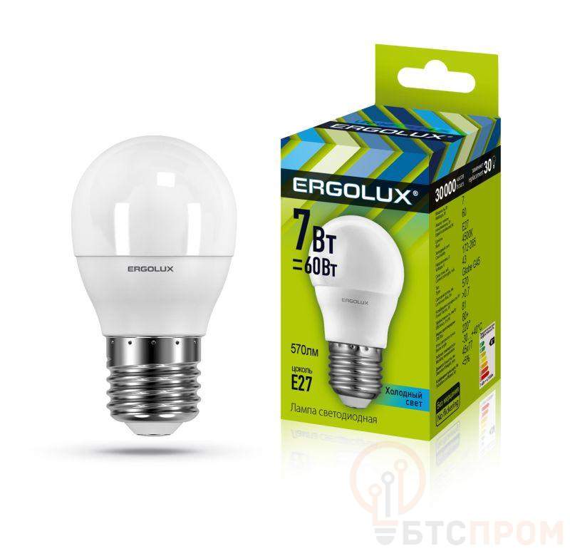 Лампа светодиодная LED-G45-7W-E27-4500K 172-265В "Шар" Ergolux 12145 фото в каталоге от BTSprom.by