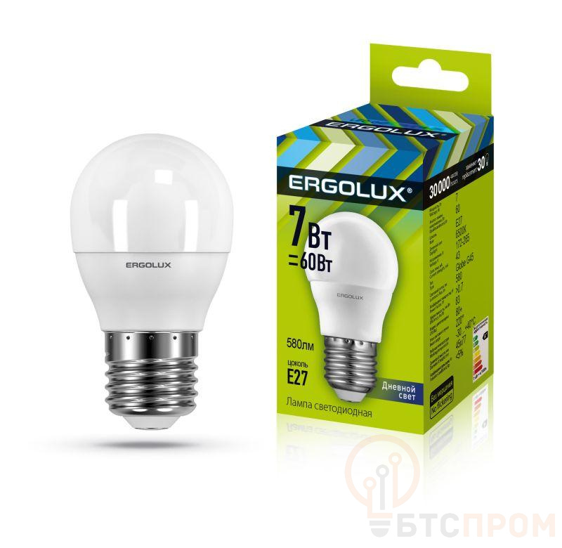 Мощность 7 Вт, Эквивалент лампы накаливания 60 Вт, Цоколь E27, Цветовая температура 6500 К, Световой поток 580 лм, Угол светового пучка 220, Индекс цветопередачи 80+