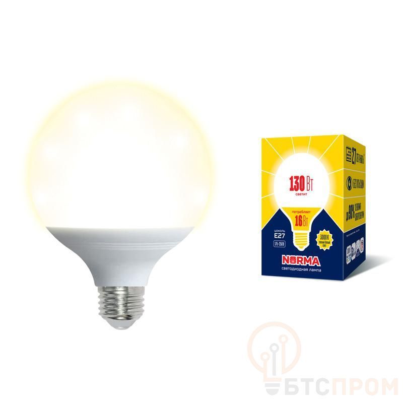 Лампа светодиодная LED-G95-16W/3000K/E27/FR/NR Norma 16Вт матовая 3000К тепл. бел. E27 (упак. картон) Volpe UL-00004873