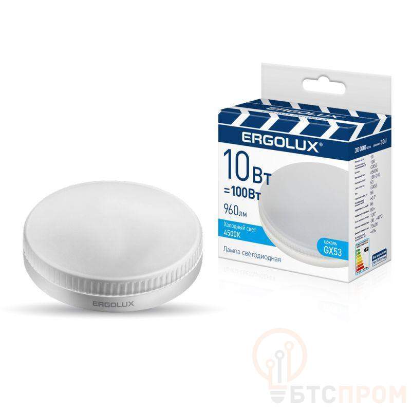 LED лампа, Мощность, Вт - 10, Напряжение, В - 180-240, Световой поток, лм - 855, Цоколь GX53, Цветовая температура, К - 4500, Угол светового пучка - 120, Индекс цветопередачи 80+, Срок службы, ч. - 30000