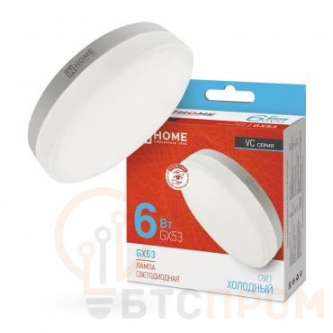 –Лампа светодиодная LED-GX53-VC 6Вт 6500К холод. бел. GX53 570лм 150-275В IN HOME 4690612030814