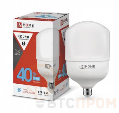 Лампа светодиодная высокомощная LED-HP-PRO 40Вт цилиндр 6500К холод. бел. E27 3800лм 230В с адаптером E40 IN HOME 4690612031101