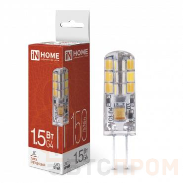 Лампа светодиодная LED-JC 1.5Вт капсульная прозрачная 4000К нейтр. бел. G4 150лм 12В IN HOME 4690612035963