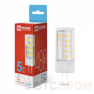 Лампа светодиодная LED-JC 5Вт капсульная прозрачная 6500К холод. бел. G4 480лм 12В IN HOME 4690612036106
