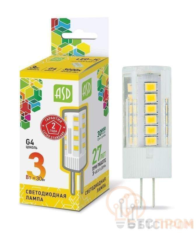 Светодиодная лампа ASD капсульной формы в силиконовом корпусе серии LED-JC-standard подойдет для люстр и светильников с плафонами диаметром от 10 мм и высотой от 35 мм. Применяется для декоративной подсветки. Является экономичной заменой галогенных капсульных ламп c цоколем G4. Снижает затраты на энергопотребление до 50%. Класс энергоэффективности – А, низкая теплоотдача, безопасный коэффициент пульсации. Способна бесперебойно работать при температуре от -40°C до +50°C в течение 30 000 часов. Линейка ламп ASD серии LED-JC-standard представлена в диапазоне мощностей от 1.5 Вт до 5 Вт и цветовой температуре 3000 К и 4000 К. Гарантия 2 года.