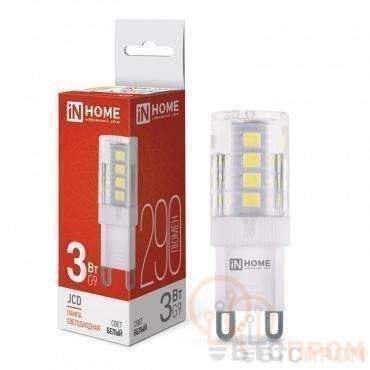 Лампа светодиодная LED-JCD 3Вт капсульная прозрачная 4000К нейтр. бел. G9 290лм 230В IN HOME 4690612036267