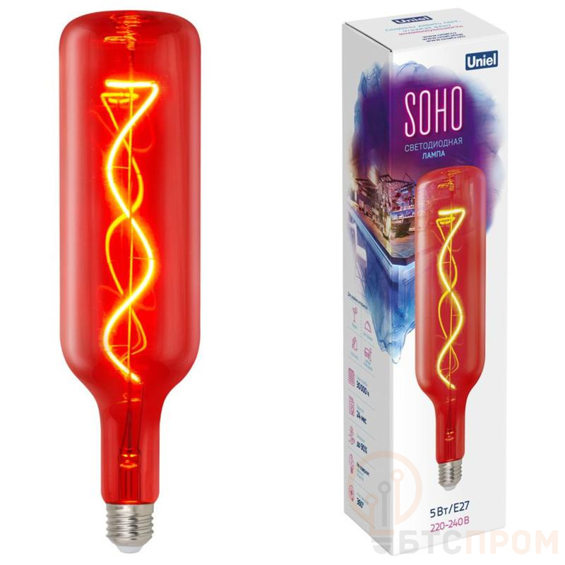 Лампа светодиодная LED-SF21-5W/SOHO/E27/CW RED GLS77RD SOHO красн. колба спиральный филамент картон Uniel UL-00007626