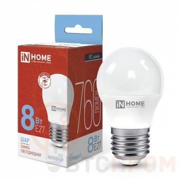 Светодиодная лампа IN HOME LED-ШАР-VC 8Вт — современное энергоэффективное решение для основного и декоративного освещения. Лампы шарообразной формы с холодным белым светом 6500К создают яркое равномерное освещение 760 люмен, идеальное для рабочих зон, кухонь, ванных комнат и коммерческих помещений.