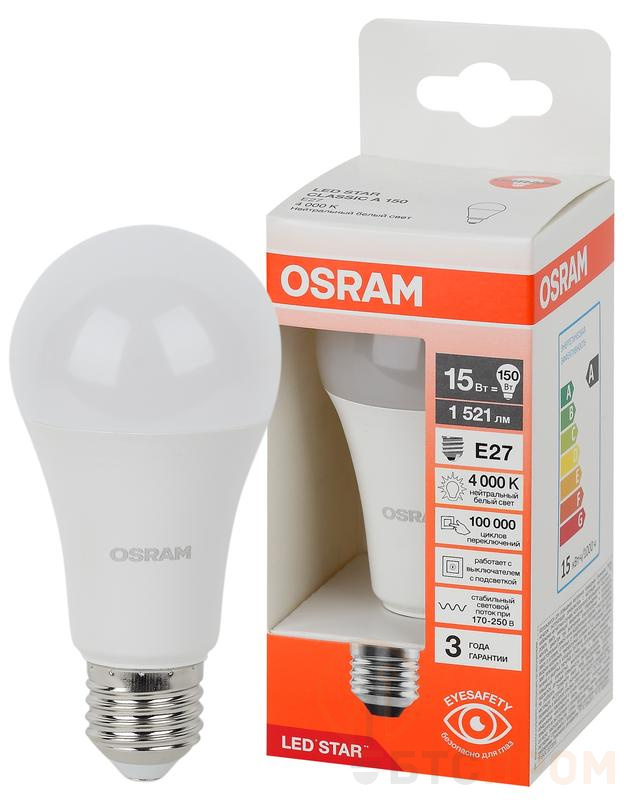 Лампа светодиодная LED Star 15Вт 4000К нейтр. бел. E27 1521лм A угол пучка 180град. 170-250В (замена 150Вт) матов. пластик OSRAM 4058075695412