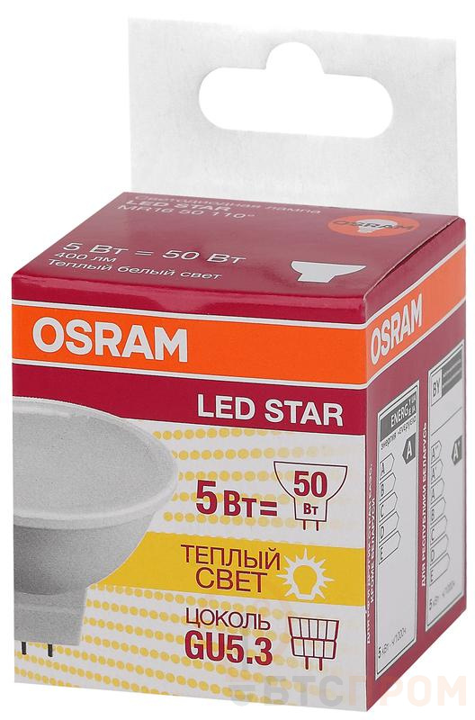 Лампа светодиодная LED Star MR16 50110 5W/830 230V GU5.3 5Вт матовая 3000К тепл. бел. GU5.3 MR16 400лм 220-240В пластик. (замена 50Вт) OSRAM 4058075480469