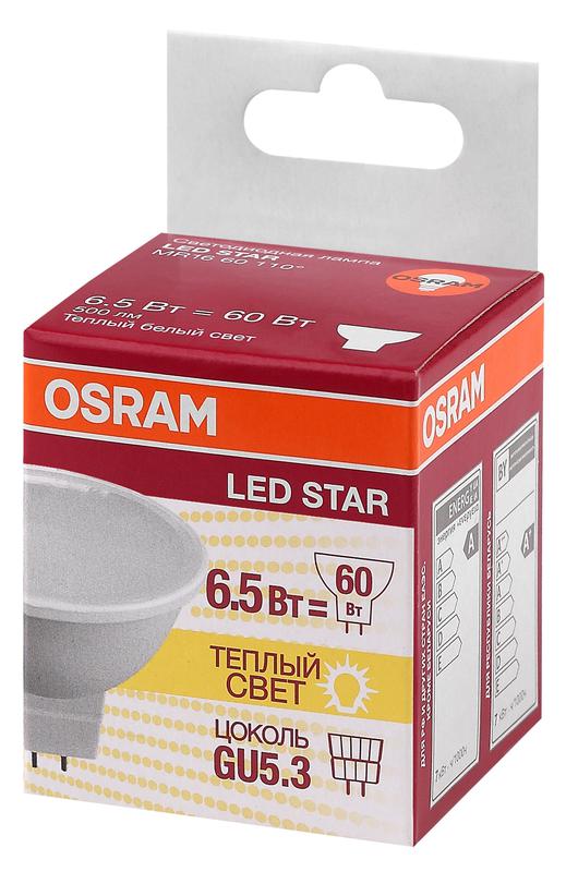 Лампа светодиодная LED Star MR16 60110 6.5W/830 230V GU5.3 6.5Вт матовая 3000К тепл. бел. GU5.3 MR16 500лм 220-240В пластик. (замена 60Вт) OSRAM 4058075480551
