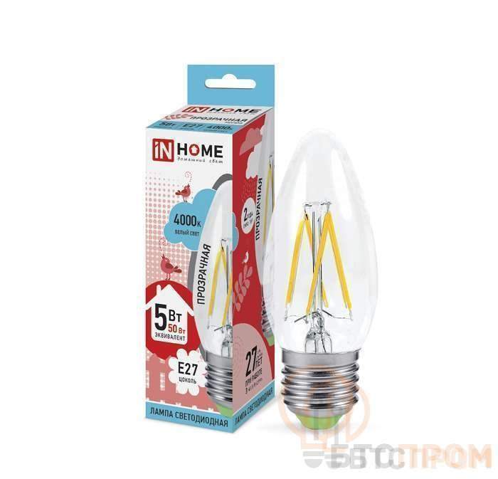 Лампа светодиодная LED-СВЕЧА-deco 5Вт свеча прозрачная 4000К нейтр. бел. E27 450лм 230В IN HOME 4690612007595