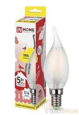 Лампа светодиодная LED-СВЕЧА НА ВЕТРУ-deco 5Вт свеча на ветру матовая 3000К тепл. бел. E14 450лм 230В IN HOME 4690612006796