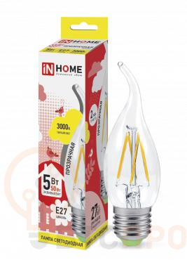 Лампа светодиодная LED-СВЕЧА НА ВЕТРУ-deco 5Вт свеча на ветру прозрачная 3000К тепл. бел. E27 450лм 230В IN HOME 4690612007649