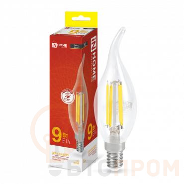 Изящная лампа от ТМ IN-HOME LED-СВЕЧА НА ВЕТРУ-deco с инновационной филаментной нитью в качестве источника света применяется для основного и декоративного освещения в жилых и общественных помещениях. Высокая экономичность светодиодной лампы позволяет сокращать энергопотребление до 90% (по сравнению с лампами накаливания). Помимо особой декоративности дизайна, модель включает в себя все преимущества светодиодных ламп: высокий класс энергоэффективности, малая теплоотдача, яркий световой поток, равномерное свечение с безопасным коэффициентом пульсации, срок службы 30 000 часов. Гарантия 2 года.