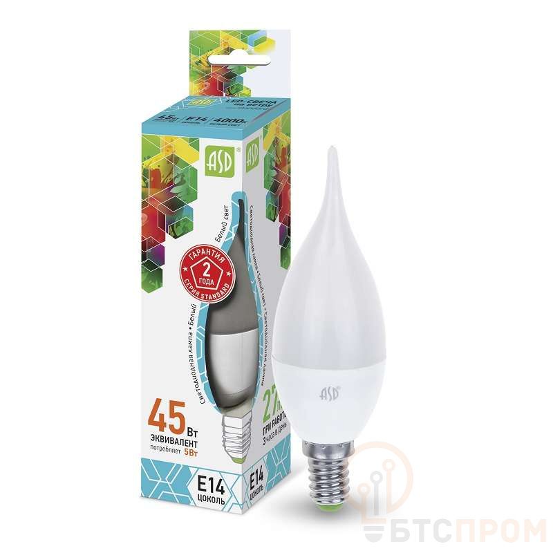 Лампа светодиодная LED-Свеча на ветру-standard 5Вт свеча на ветру 4000К нейтр. бел. E14 450лм 160-260В ASD 4690612004525