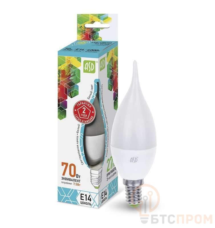 Лампа светодиодная LED-Свеча на ветру-standard 7.5Вт свеча на ветру 4000К нейтр. бел. E14 675лм 160-260В ASD 4690612004563