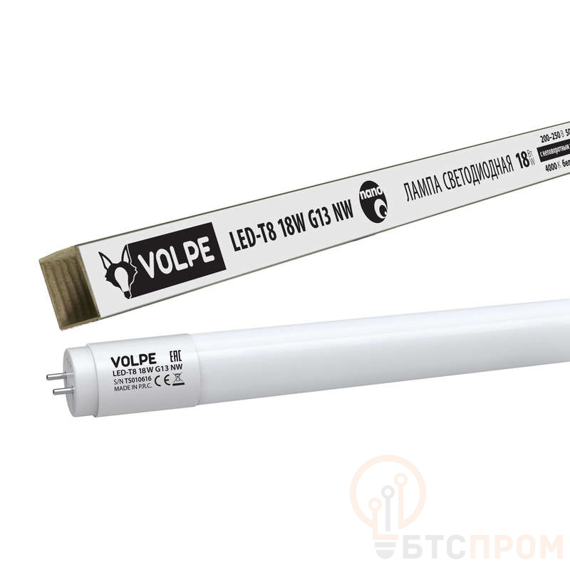 Лампа на 18Вт (G13), матовая, неповоротная. Нейтральный белый свет. Для помещений с высокими потолками.