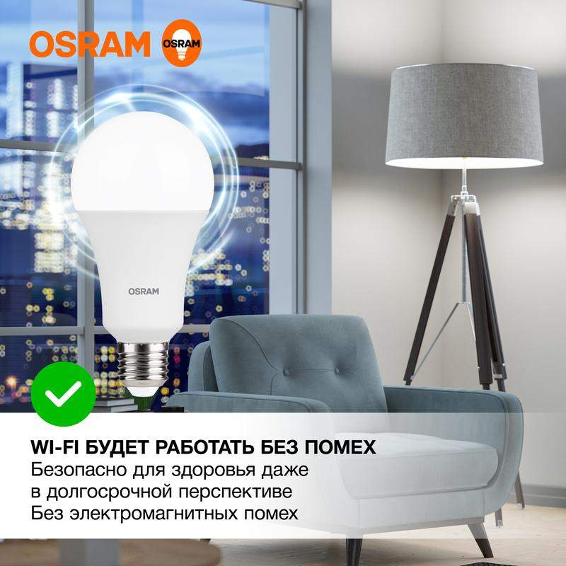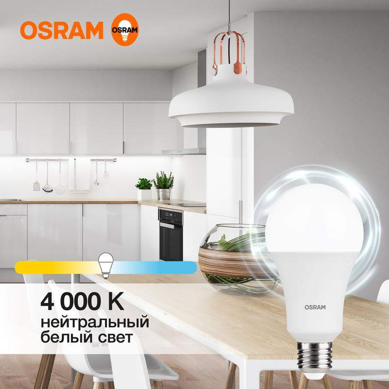 Светодиодные лампы OSRAM - разумная замена традиционным лампам накаливания или галогенным лампам. Светодиодные лампы OSRAM снижают затраты на освещение до 90% при сохранении привычного уровня освещенности. Эта лампа OSRAM серии LED Value выполнена в форме колбы A ("груша") с цоколем E27. Материал колбы - пластик, исполнение - матовое. Световой поток 1600 люмен, что соответствует лампе накаливания на 150 Вт. Такие лампы применяются для внутреннего освещения, хотя в закрытом светильнике можно использовать и на улице. Эта лампа излучает нейтральный белый свет, угол пучка - широкий. Качество света на высоте: низкие пульсации защищают глаза, а высокий индекс цветопередачи позволяет видеть мир в его истинном цвете. Кроме того, лампы OSRAM полностью безопасны для здоровья, поскольку в них нет опасных материалов по европейскому стандарту RoHS, а также они не производят вредных электромагнитных излучений, что подтверждено ЭМС (сертификат электромагнитной совместимости). Лампа проработает долго: срок службы - 25000 часов, 2 года гарантии. Светодиодные лампы OSRAM - умный выбор для здоровья семьи и кошелька!