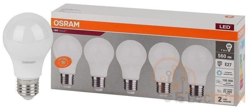 Лампа светодиодная LEDVANCE LED Value LVCLA60 7SW/865 7Вт – лампа формы А с холодным белым светом. Мощность 7 Вт. Холодный белый свет (6500K, индекс 865) создает яркую, бодрящую атмосферу, идеальную для подсобных помещений, гаражей, мастерских и технических зон. Цоколь E27. Матовая колба. Напряжение 230 В. Упаковка по 5 штук. Продукция OSRAM гарантирует качество и долговечность. Подходит для помещений, где важна максимальная освещенность.