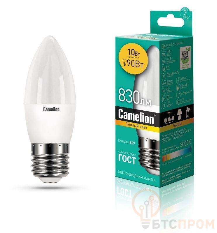 CДЛ Camelion - это инновационное решение, разработанное на основе новейших светодиодных технологий (LED). Предназначена для освещения жилых, офисных и коммерческих помещений. Встроенный источник питания позволяет использовать СДЛ Camelion в стандартных патронах. LED лампа, мощность, Вт - 10, напряжение, В - 170-265, световой поток, лм - 830, форма колбы - свеча, цвет колбы - белый, цоколь E27, цветовая температура, К - 3000, угол светового пучка - 220, индекс цветопередачи 80+, срок службы, ч. - 30000