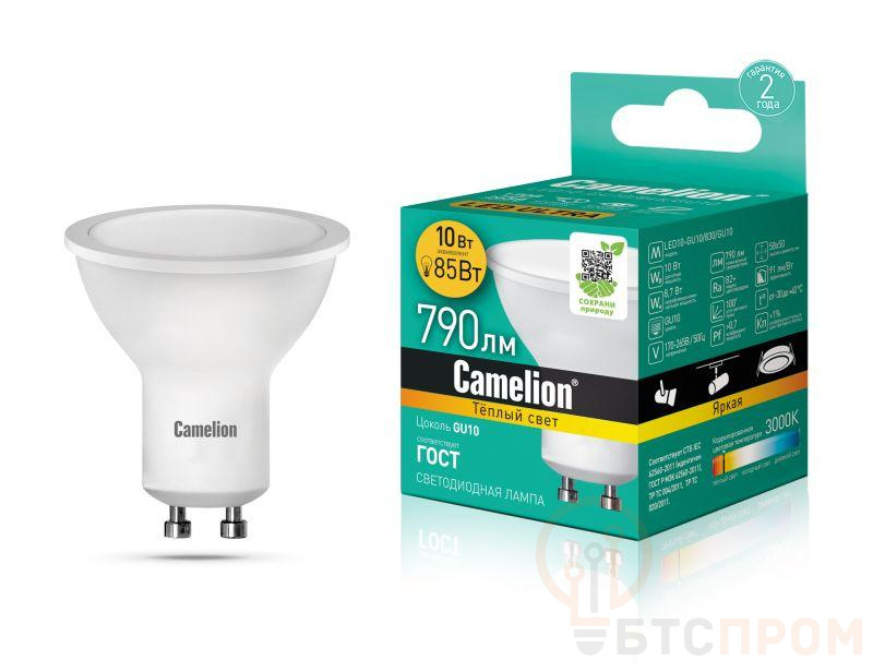 CДЛ Camelion - это инновационное решение, разработанное на основе новейших светодиодных технологий (LED). Предназначена для освещения жилых, офисных и коммерческих помещений. Встроенный источник питания позволяет использовать СДЛ Camelion в стандартных патронах. LED лампа, мощность, Вт - 10, напряжение, В - 170-265, световой поток, лм - 790, форма колбы - рефлектор, цвет колбы - белый, цоколь GU10, цветовая температура, К - 3000, угол светового пучка - 100, индекс цветопередачи 80+, срок службы, ч. - 30000
