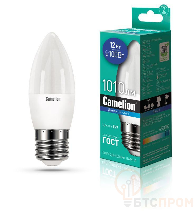 СДЛ Camelion - это инновационное решение, разработанное на основе жилых, новейших светодиодных технологий (LED). Предназначена для освещения офисных и коммерческих помещений. Встроенный источник питания позволяет использовать СДЛ Camelion в стандартных патронах. LED лампа, мощность, Вт - 12, напряжение, В - 170-265, световой поток, лм - 1010, форма колбы - свеча, цвет колбы - белый, цоколь E27, цветовая температура, К - 6500, угол светового пучка - 220, индекс цветопередачи 80+, срок службы, ч. - 30000