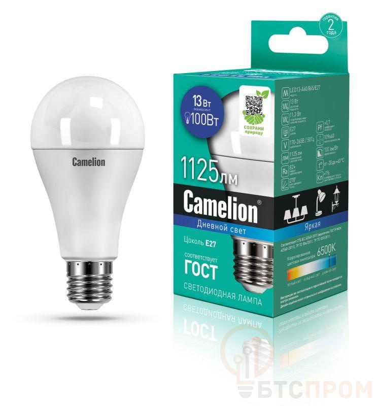 СДЛ Camelion - это инновационное решение, разработанное на основе новейших светодиодных технологий (LED). Предназначена для освещения жилых, офисных и коммерческих помещений. Встроенный источник питания позволяет использовать СДЛ Camelion в стандартных патронах. LED лампа, мощность, Вт - 13, напряжение, В - 170-265, световой поток, лм - 1125, форма колбы - груша, цвет колбы - белый, цоколь E27, цветовая температура, К - 6500, угол светового пучка - 270, индекс цветопередачи 80+, срок службы, ч. - 30000