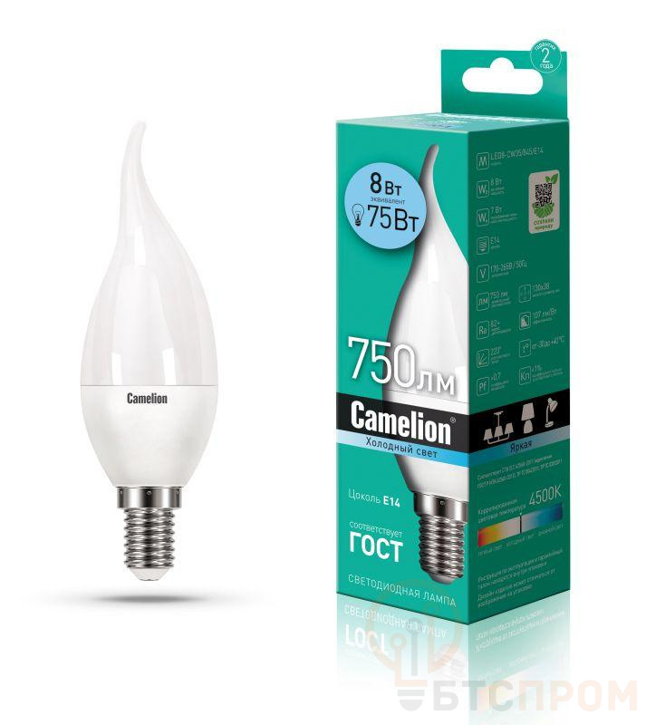 СДЛ Camelion - это инновационное решение, разработанное на основе жилых, новейших светодиодных технологий (LED). Предназначена для освещения офисных и коммерческих помещений. Встроенный источник питания позволяет использовать СДЛ Camelion в стандартных патронах. LED лампа, мощность, Вт - 8, напряжение, В - 170-265, световой поток, лм - 750, форма колбы - свеча, цвет колбы - белый, цоколь E14, цветовая температура, К - 4500, угол светового пучка - 220, индекс цветопередачи 80+, срок службы, ч. - 30000