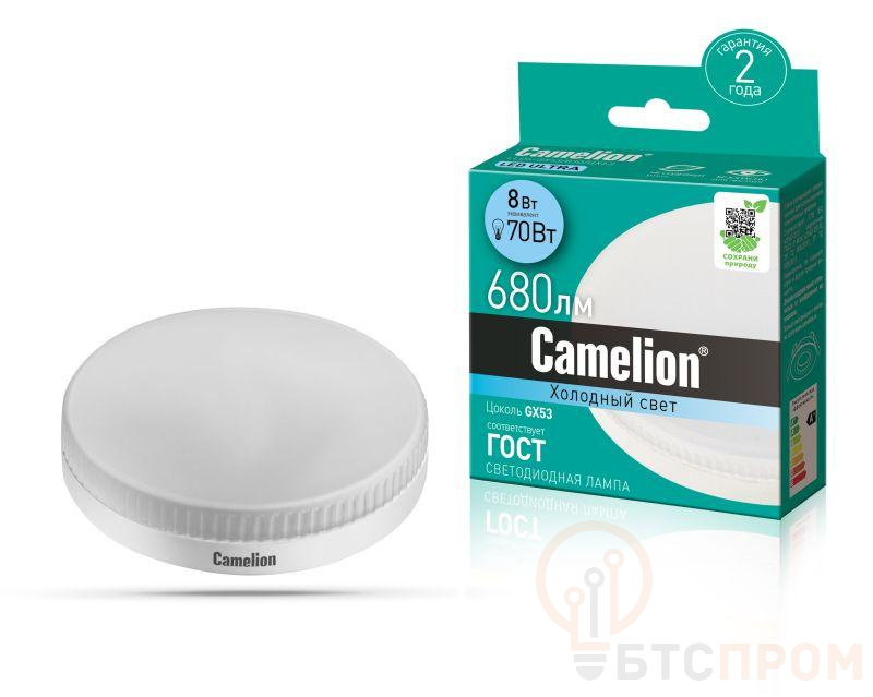 CДЛ Camelion - это инновационное решение, разработанное на основе новейших светодиодных технологий (LED). Предназначена для освещения жилых, офисных и коммерческих помещений. Встроенный источник питания позволяет использовать СДЛ Camelion в стандартных патронах. LED лампа, мощность, Вт - 8, напряжение, В - 170-265, световой поток, лм - 680, форма колбы - рефлектор, цвет колбы - белый, цоколь GX53, цветовая температура, К - 4500, угол светового пучка - 120, индекс цветопередачи 80+, срок службы, ч. - 30000