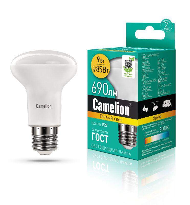 CДЛ Camelion - это инновационное решение, разработанное на основе новейших светодиодных технологий (LED). Предназначена для освещения жилых, офисных и коммерческих помещений. Встроенный источник питания позволяет использовать СДЛ Camelion в стандартных патронах. LED лампа, мощность, Вт - 9, напряжение, В - 170-265, световой поток, лм - 690, форма колбы - рефлектор, цвет колбы - белый, цоколь E27, цветовая температура, К - 3000, угол светового пучка - 120, индекс цветопередачи 80+, срок службы, ч. - 30000