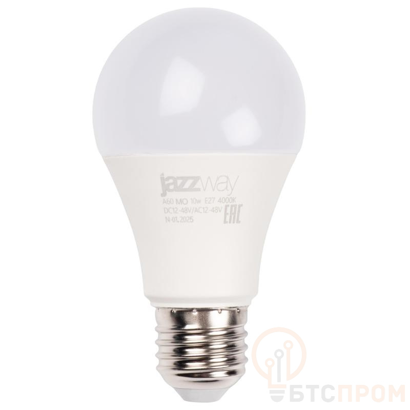 Лампа светодиодная низковольтная PLED-A60 MO 10Вт 4000К нейтр. бел. E27 12-48В AC/DC Pro JazzWay 5019782