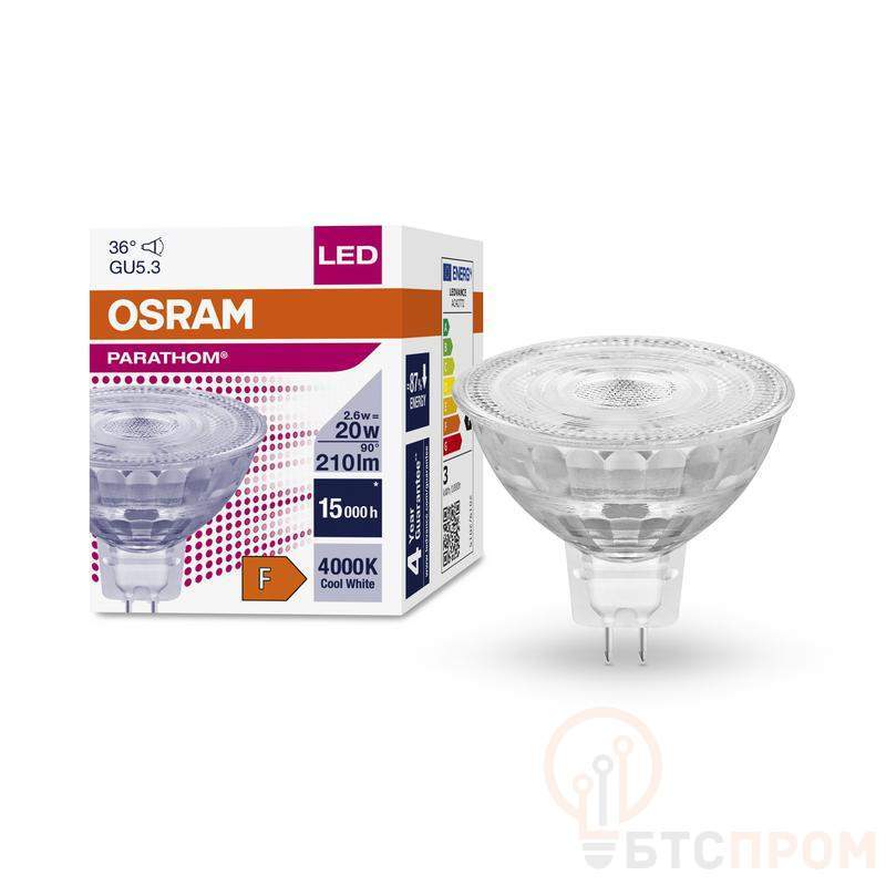 Лампа светодиодная PARATHOM MR16 2.6Вт 4000К нейтр. бел. GU5.3 210лм прозр. стекло 12В (замена 20Вт) OSRAM 4058075796614