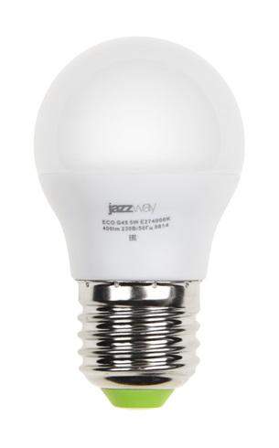 Лампа светодиодная PLED-ECO 5Вт G45 шар матовая 4000К нейтр. бел. E27 400лм 230В 50Гц JazzWay 1036988A