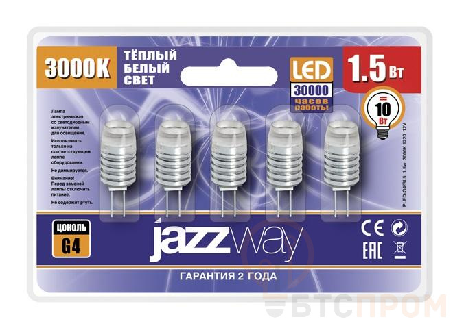 Лампа светодиодная PLED-G4/BL5 1.5Вт капсульная 3000К тепл. бел. G4 90лм 12В (уп.5шт) JazzWay 1021168