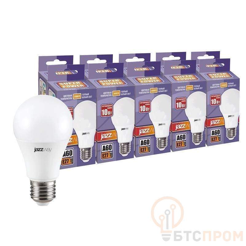 Лампа на 10Вт. Форма A60, тёплый свет (3000K), цоколь E27. Упаковка 10 шт.