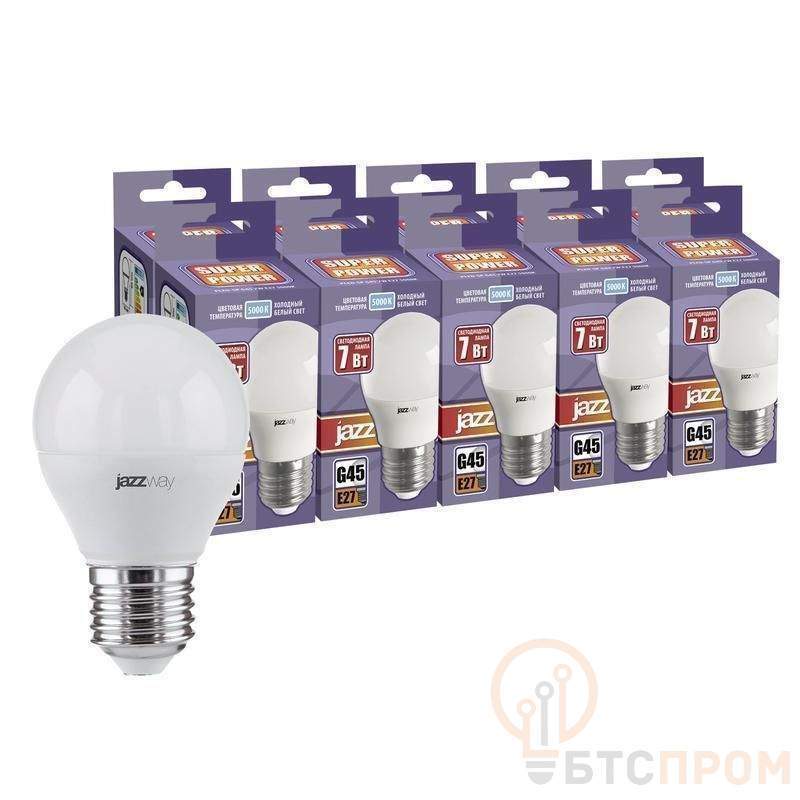 –Лампа светодиодная PLED-SP 7Вт G45 5000К холод. бел. E27 230В 50Гц (уп.10шт) JazzWay 1028426