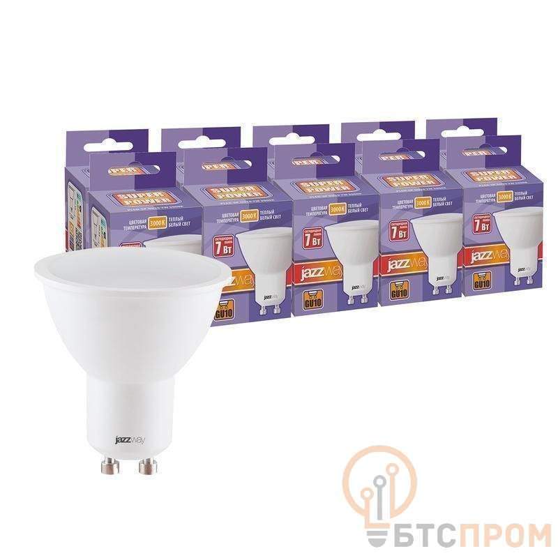 Лампа на 7Вт. PAR16, тёплый свет (3000K), цоколь GU10. Упаковка 10 шт.