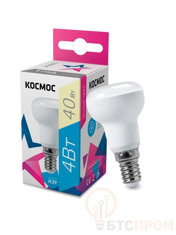 Светодиодная лампочка 4 Вт является аналогом зеркальной лампы накаливания R39 40 Вт – для средней комнаты понадобится 8 таких лампочек. Направленный свет для встраиваемых светильников. Стабильный свет без падения яркости в течение всего срока службы (30 000 часов) – за счет использования чипов от мирового лидера Epistar. Лампа работает в диапазоне от 174В до 265В - не перегорит и не потеряет яркость при скачках напряжения в сети. Цвет свечения лампы - 3000 К теплый белый, идеально подойдет для спальни, и других зон, где требуется мягкий, расслабляющий свет. «Здоровый» свет без мерцания не утомляет глаза, а высокий индекс цветопередачи передает естественные цвета и оттенки. По размеру сопоставима с обычной лампочкой накаливания, но экономит до 90% энергии по сравнению с ней. Экологически безопасна и не требует утилизации. 2 года гарантии